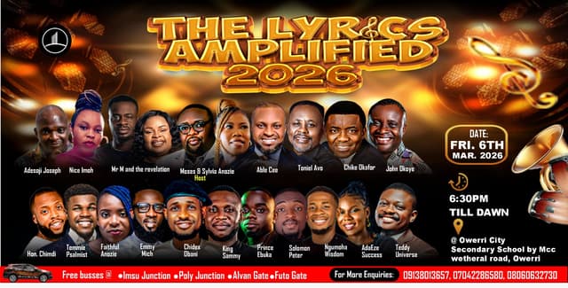 Our yearly programs are events orchestrated to bring God's timely divine move within the year. We have programs such as Harvest of Miracles, Lyrics Amplified, His Glory Conference, and Choir Day Celebration, among others, as the Lord may direct.